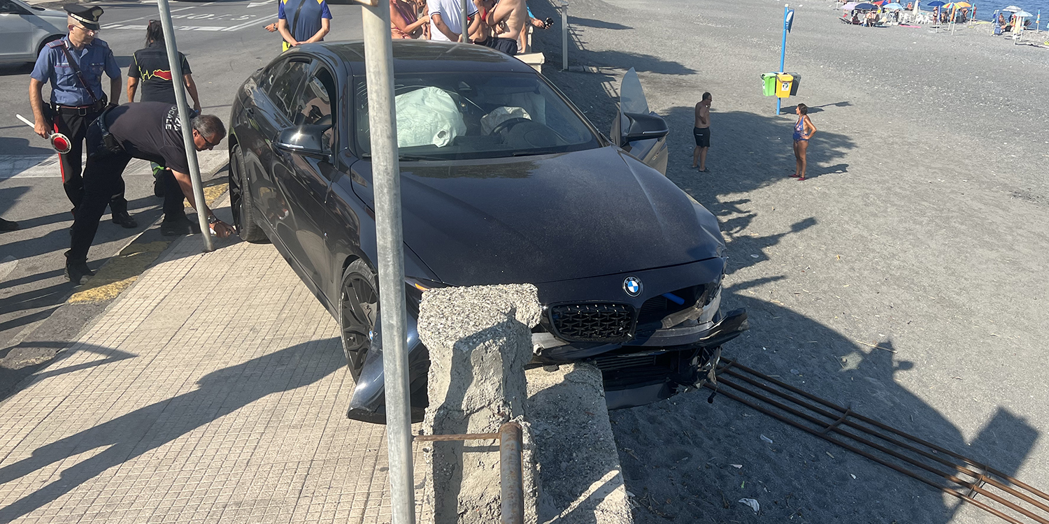 Scontro sul lungomare di Roccalumera, auto rischia di volare in spiaggia - FOTO