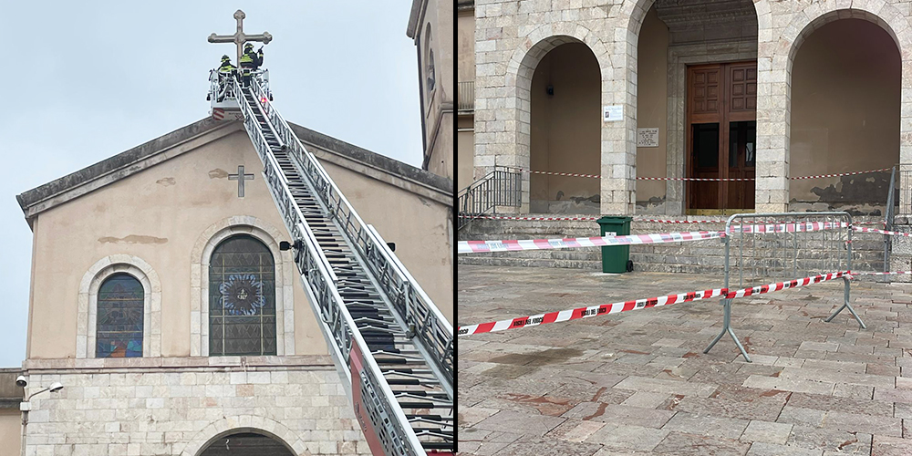 Ciclone Harry, crollano calcinacci dalla chiesa di Sant'Alessio: transennato l'ingresso
