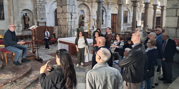 È Fiumedinisi la location scelta da Archeoclub Area Jonica Messina per la “Primavera dei borghi” 2026, l’evento organizzato da Archeoclub in tutta Italia per la valorizzazione dei borghi. “Quest’anno abbiamo pensato a Fiumedinisi – spiega la presidente di Archeoclub Area Jonica Messina, Ketty Tamà - perché possiede edifici storici importanti, splendide chiese ed un centro storico pregevole. Restiamo convinti che la promozione del territorio deve essere fatta da coloro che il territorio lo vivono, lo amano e lo studiano. Se non passa l'emozione, se certi racconti, come oggi quelli relativi agli eventi che precedono la tradizionale "Vara" di Fiumedinisi, non li ascoltiamo da voci rotte dall'emozione o accese dalla passione, non serve: é solo triste nozionistica. Abbiamo confermato al sindaco la nostra disponibilità a qualsiasi iniziativa che miri alla promozione del borgo”. La giornata è stata caratterizzata da una visita guidata dallo storico prof. Carlo Gregorio - che da decenni studia la storia e le caratteristiche di Fiumedinisi, producendo diverse pubblicazioni - in collaborazione con la Parrocchia e dei ragazzi della Pro loco, guidati da Angelo Frasson. La “Matrice” e la sua cripta è stata la prima tappa, con l’illustrazione delle caratteristiche della Chiesa, fortemente intrecciate con l’importante storia del borgo, che ha visto, tra le altre cose, l’incidenza storica e artistica dei Colonna e, prima ancora, aveva assistito alla morte di Enrico VI di Svevia, padre di Federico II. Sviscerati anche profili economici storici (come la Zecca) ed in parte attuali (come la produzione di un legno speciale anche per interni delle automobili). Subito dopo è stata la volta del museo curato dalla Pro Loco, dove a farla da protagonista è stata la festa della SS. Annunziata ed i riti ad essa collegati. Visitato anche il museo degli antichi mestieri e infine la Chiesa di S. Pietro, prima dell’incontro con il sindaco Giovanni De Luca, in piazza Matrice. Domenica prossima Archeoclub si sposterà nella Valle del Chiodaro, a Gallodoro, dove verrà inaugurato il ritorno restaurato di un quadro di San Marco Evangelista. Adopo la messa delle 18.30, il parroco don Daniele Truscello, il sindaco Alfio Currenti ed il presidente di Archeoclub introdurranno l’iniziativa. La storia del quadro e del suo restauro verrà illustrata dal critico d’arte Salvatore Mosca, di Archeoclub, dal restauratore Gaetano Alanga e da Virginia Buda della Soprintendenza di Messina.